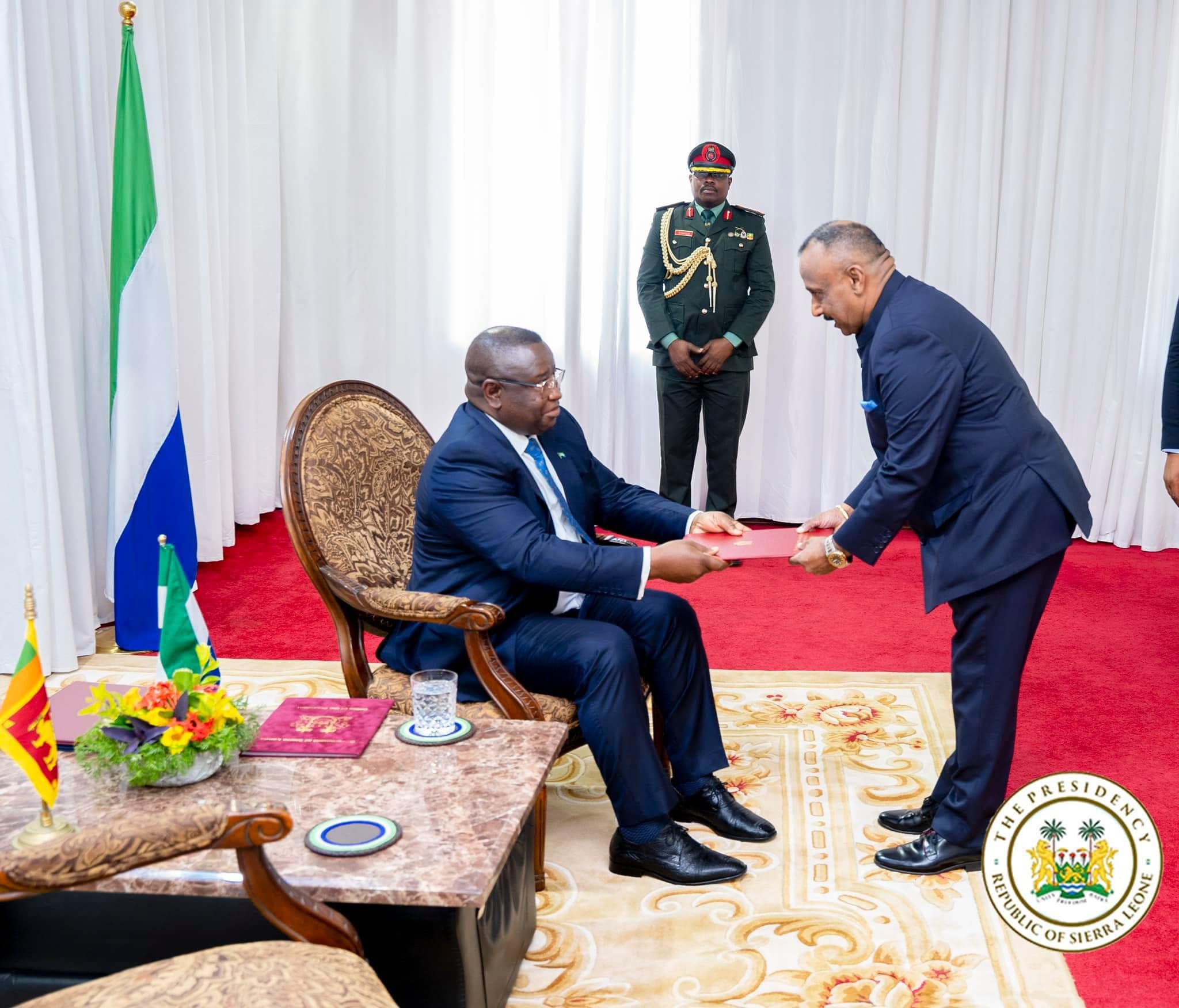 President Julius Maada Bio has played host and received the credentials from the Ambassador of the Kingdom of Spain to the Republic of Sierra Leone based in Guinea, H.E Angel Antonio Carrascal Guitierrez at state house in Freetown.