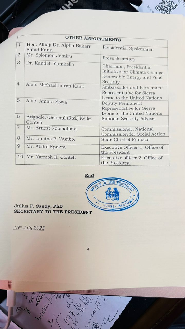 Sierra Leone’s president Julius Maada Bio Has Announced his second set of cabinet ministers…