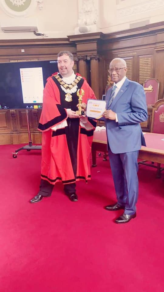 The Sierra Leone High Commissioner to the kingdom of Great Britain and Northern Ireland HE DR. Morie Manyeh received the award on behalf President Bio who was in another Program in the Dubai 2020 Expo.