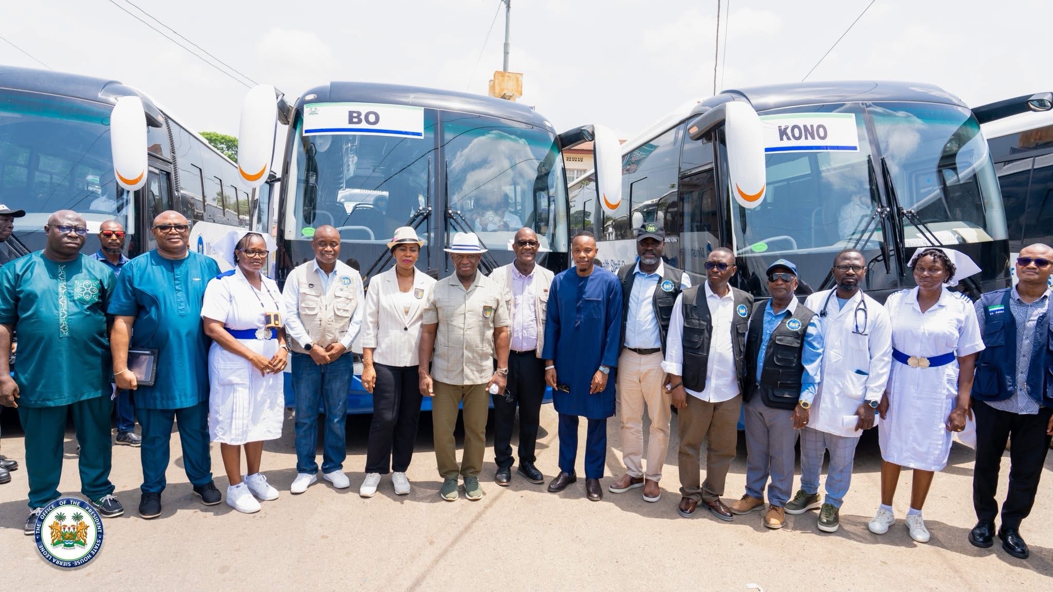 Sierra Leone President, Dr. Julius Maada Bio on Saturday, April 4, 2026, commissioned a fleet of buses, vehicles, and motorcycles for the health sector at the Bo Government Hospital, as part of efforts to improve healthcare service delivery across the country.