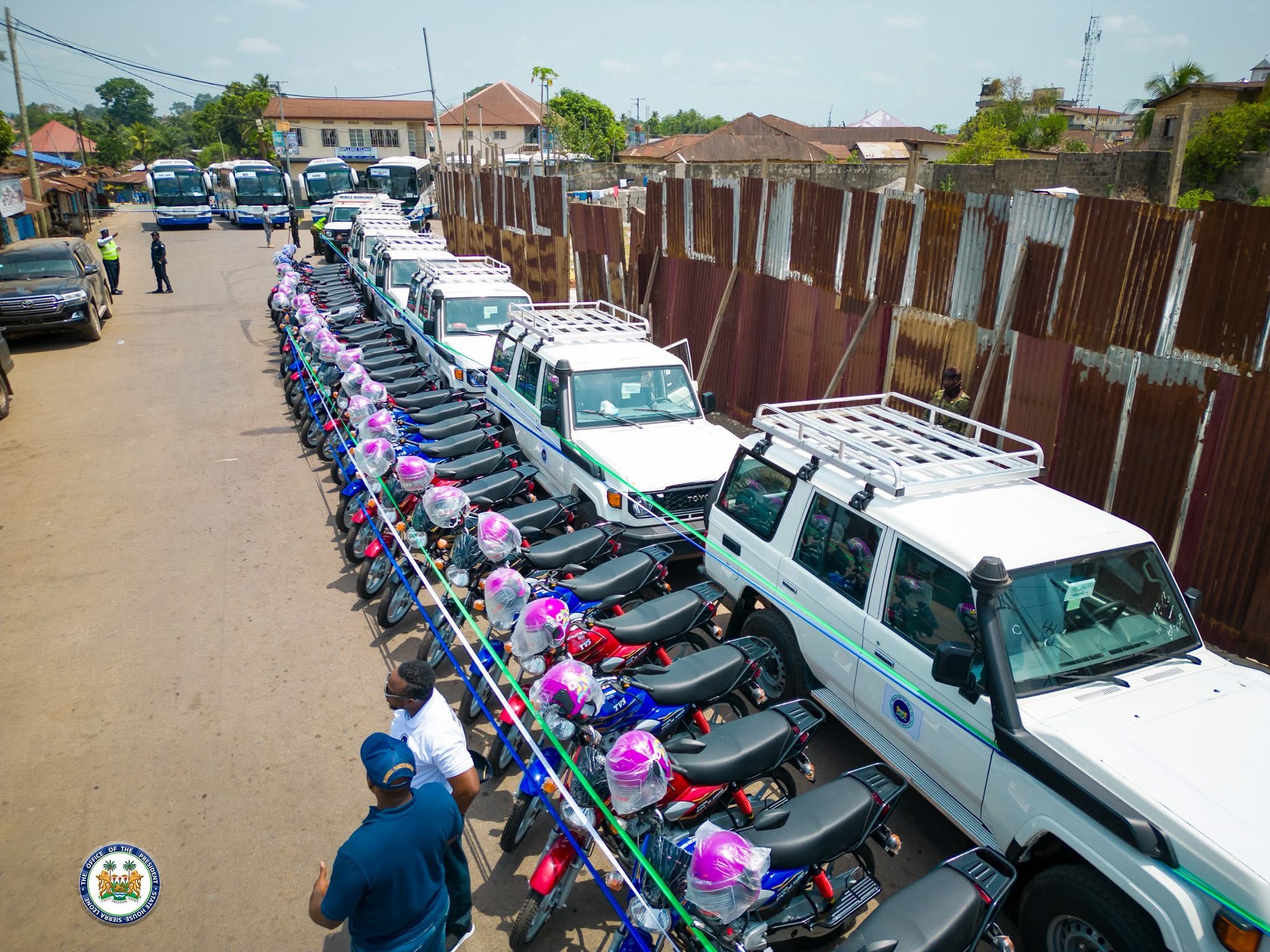 “Today in Bo, I proudly commissioned 10 buses for nurses across 5 districts, along with SUVs for medical superintendents and motorbikes – a historic milestone!” he said.