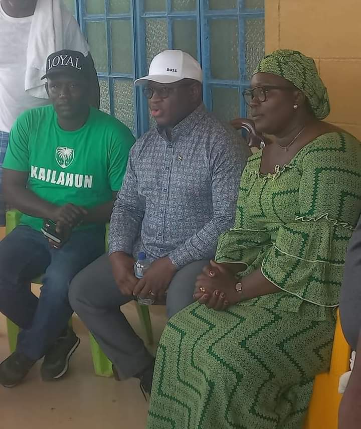 With him was the Political Consultant and former Aspirant for the SLPP Chairmanship, Jimmy Batilo Songa and Wuyatta Kallon Songa.