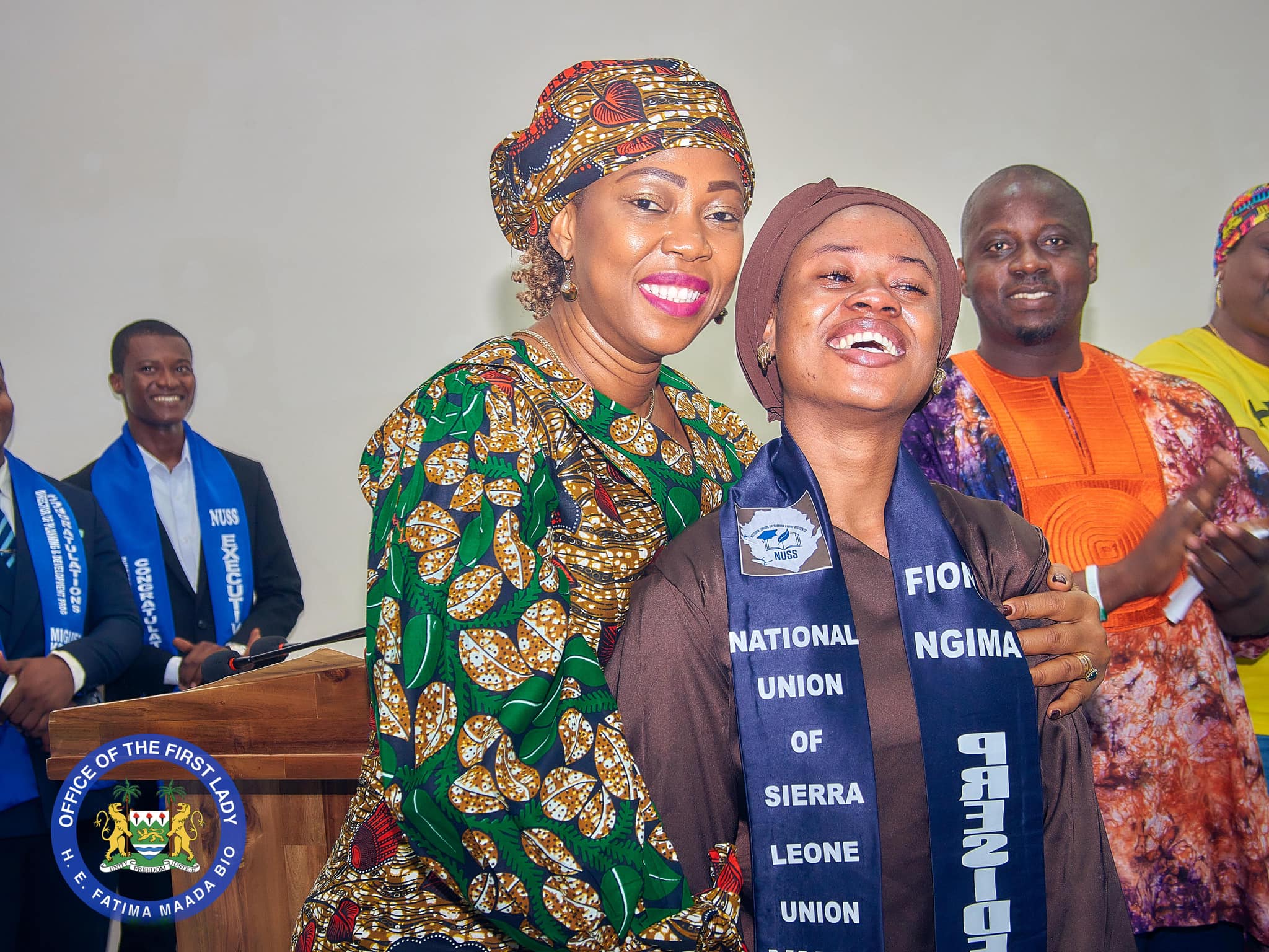 First Lady of Sierra Leone, Dr. Fatima MaadacBio has presided over the coronation of Madam Fiona Ngima as the first female President of the National Union of Sierra Leone Students (NUSS).