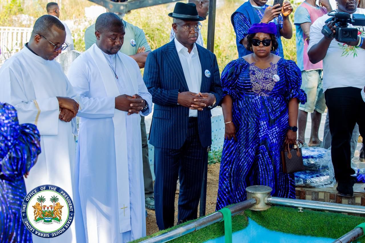 President Dr. Julius Maada Bio, accompanied by the First Lady Dr. Fatima Maada Bio, has joined family members, the Catholic community, sympathisers, and well-wishers at the Mass of the Resurrection of his beloved sister, Mrs. Alice Josephine Tucker (née Bio), held at the Immaculate Heart of Mary Cathedral in Bo City. She passed away at the age of 76.