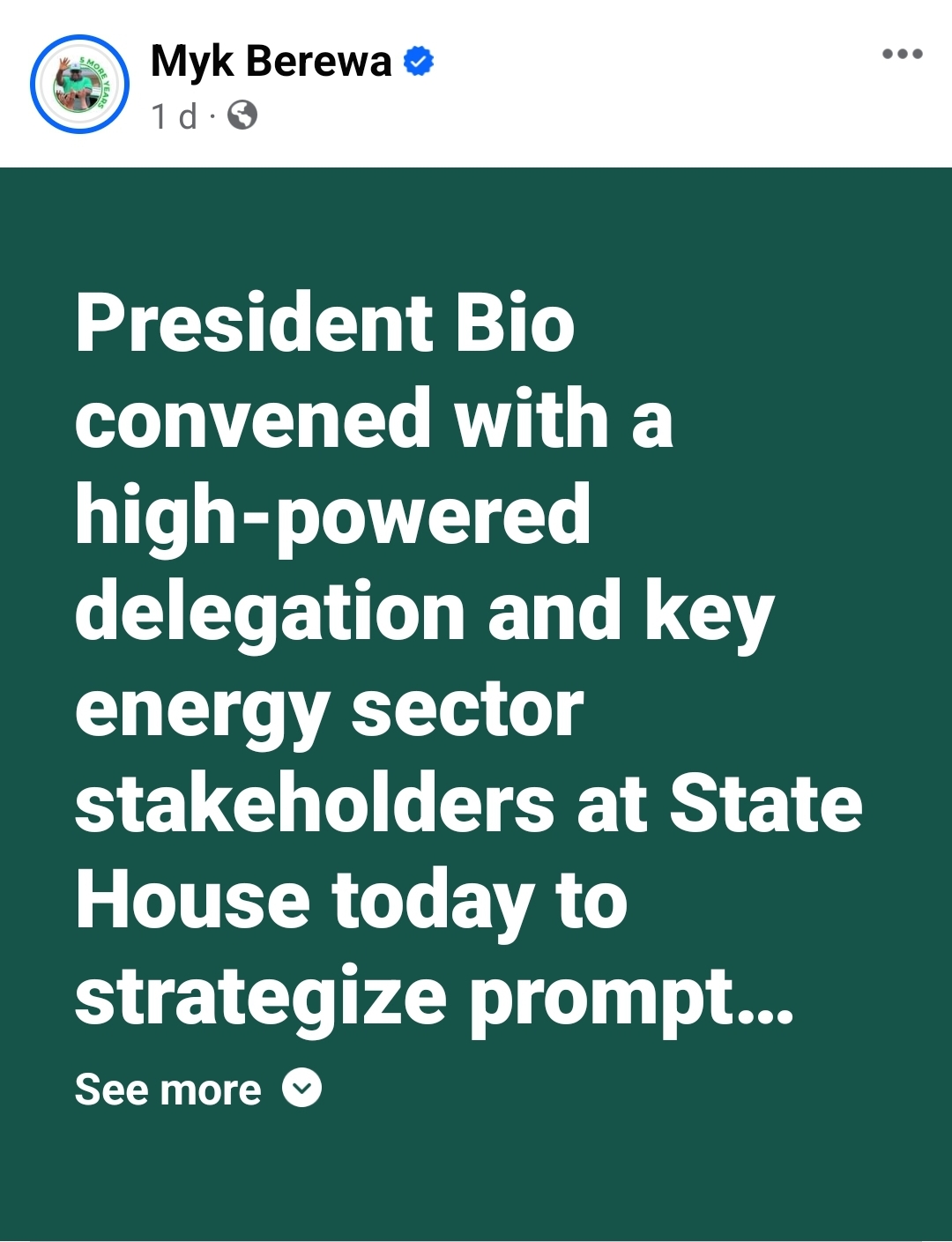 In response to Freetown’s recent power outage crisis, President Bio has convened a crucial meeting at State House with a high-powered delegation and key stakeholders from the energy sector.