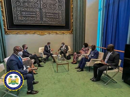 New York, United States, Tuesday 21 September 2021 – His Excellency President Dr Julius Maada Bio has held productive bilateral meetings on the margins of the 76th UN General Assembly, UNGA, with President Borut Pahor of the Republic of Slovenia, President Felix-Antoine Tshisekedi Tshilombo of Democratic Republic of Congo, DRC, and Director-General of World Trade Organisation, WTO, Dr Ngozi Okonjo-Iweala.