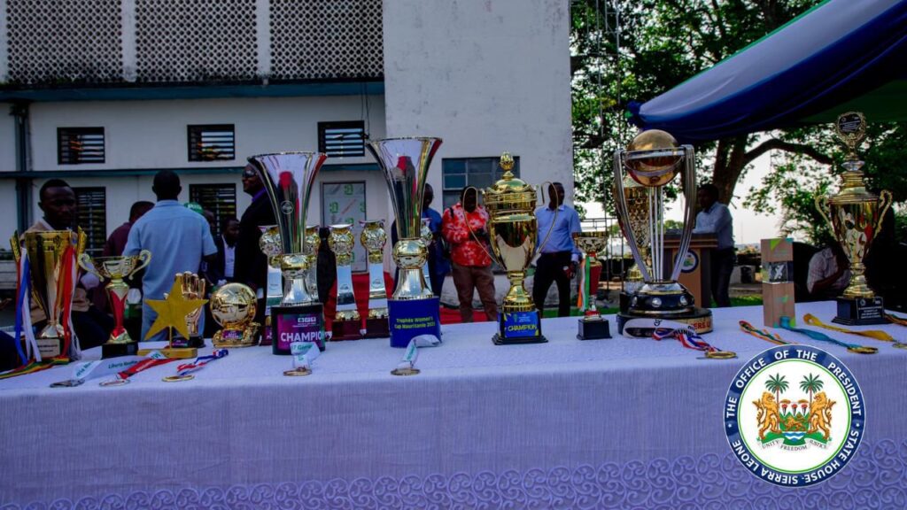 President His Excellency President Dr. Julius Maada Bio has presented medals and trophies to Sierra Leone’s national athletes across thirteen sporting disciplines, celebrating their outstanding performances on the international stage.