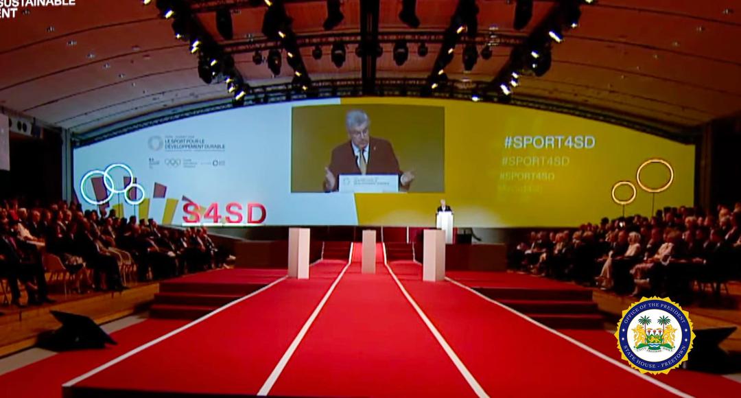 His Excellency President Dr. Julius Maada Bio of Sierra Leone participated in the International Summit on Sport for Sustainable Development, where he expressed his heartfelt thanks to French President Emmanuel Macron and International Olympic Committee (IOC) President Thomas Bach for their leadership in this crucial initiative.