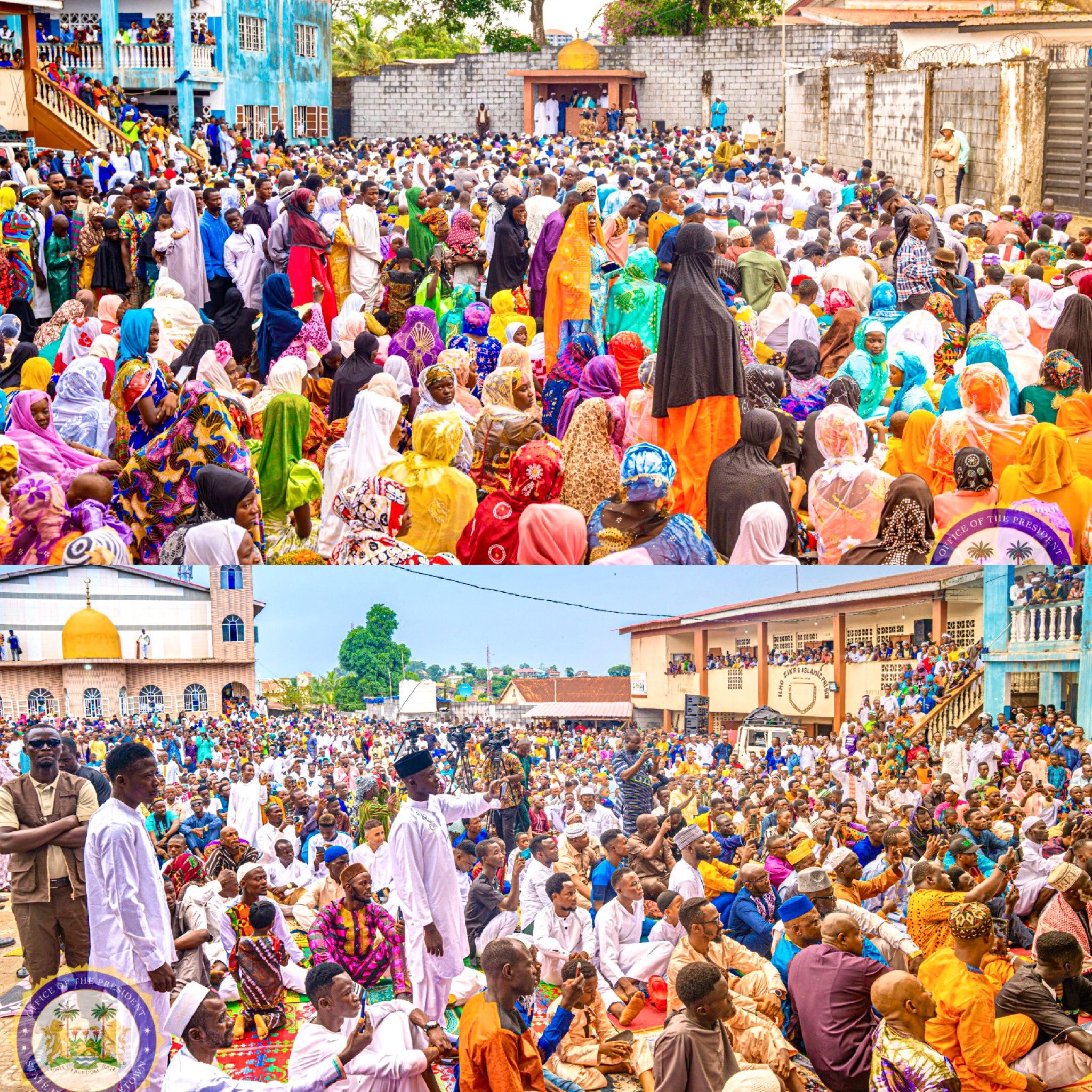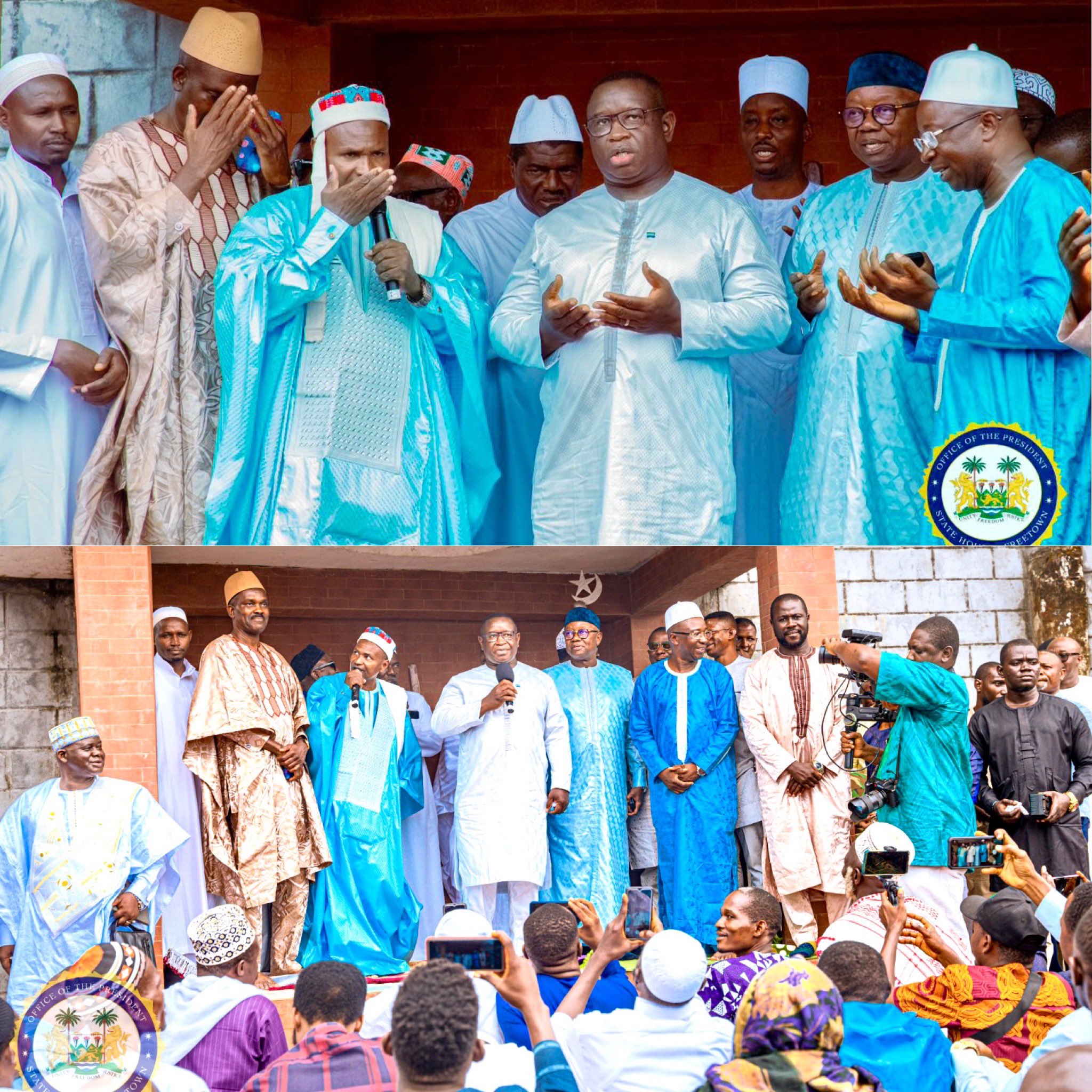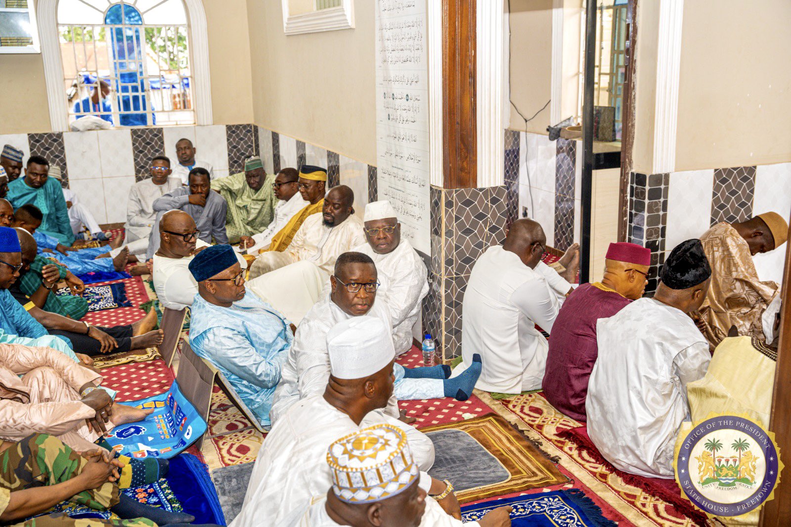 President Julius Maada Bio has observed his 2023 Eid Ul-Fitr Prayers at Jamatul Ilmu-Zikr Mosque in Hill Station, Freetown.