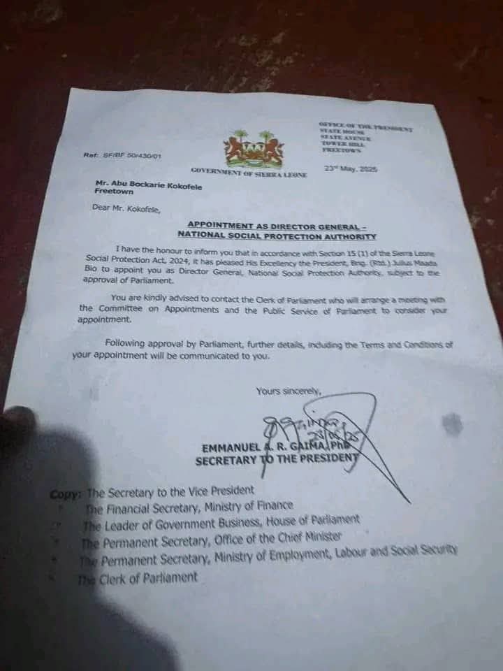 Sierra Leone’s President, Julius Maada Bio has appointed Abu Bockarie Kokofele as the first Director-General of the National Social Protection Authority (NSPA).