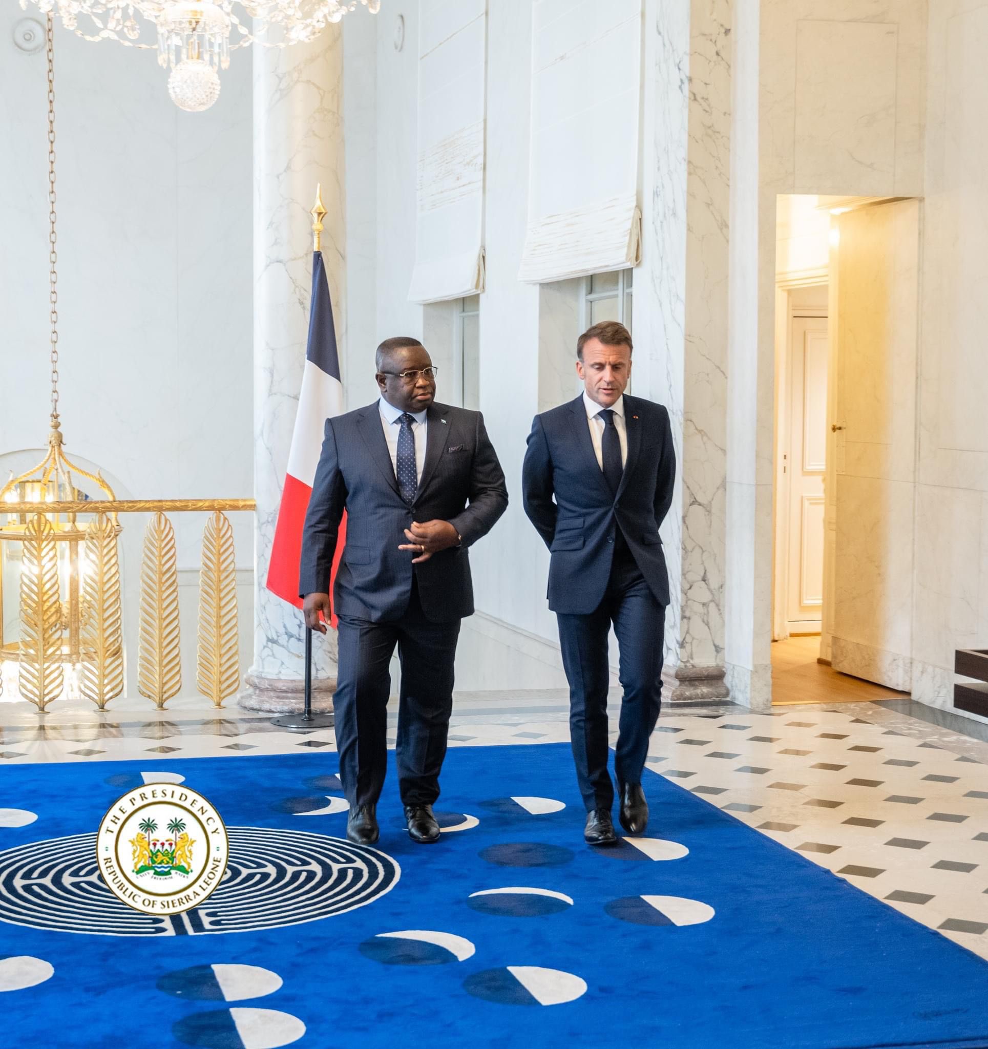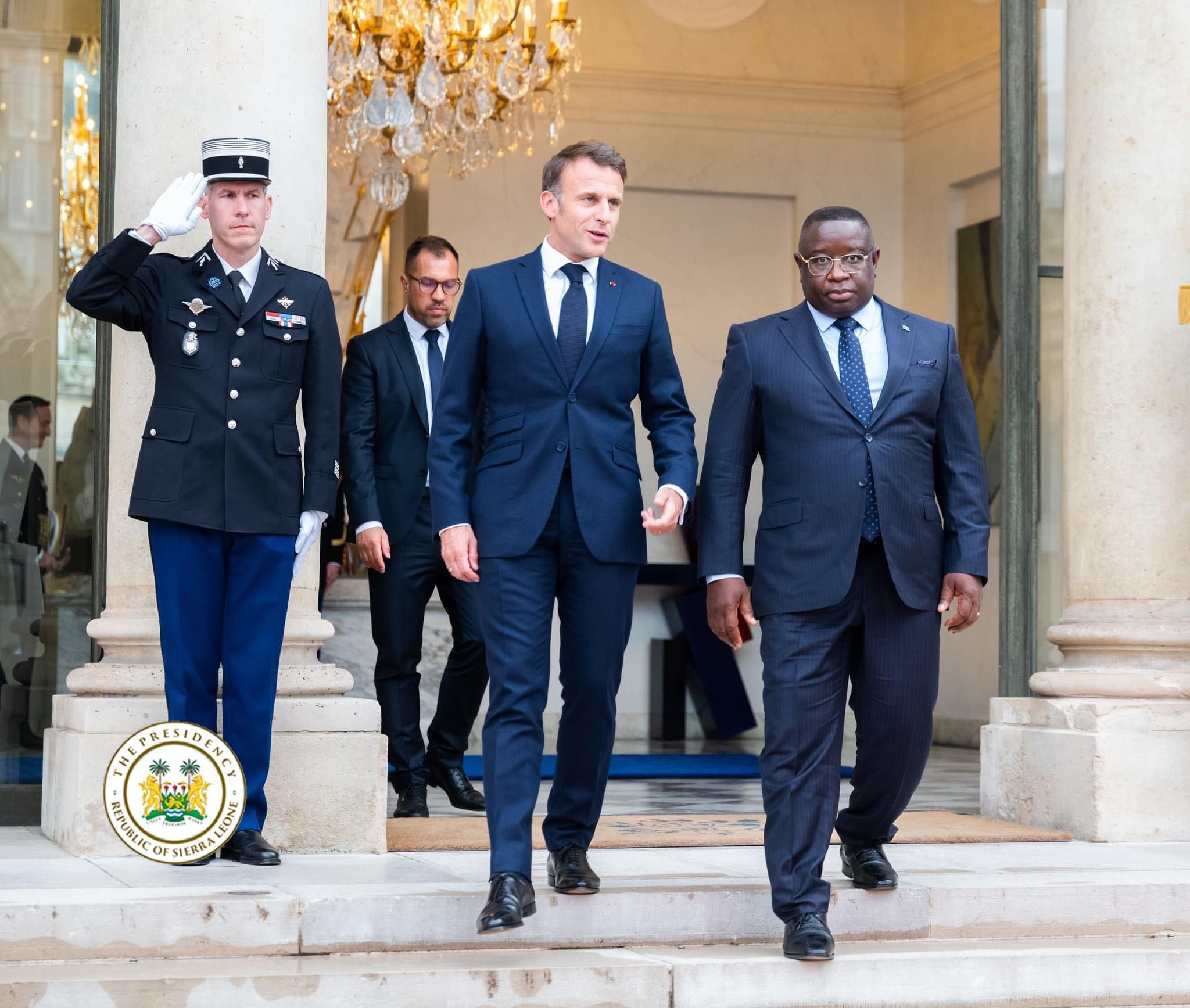His Excellency President Dr Julius Maada Bio has met with French President Emmanuel Macron to discuss and strengthen bilateral relations between the two nations.