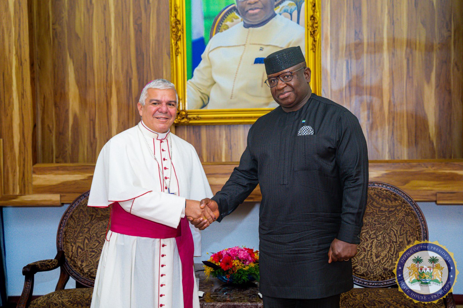 President Julius Maada Bio has on Thursday 20th April 2023 Received the Apostolic Nuncio to sierra Leone.