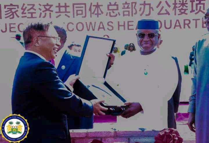 His Excellency President Dr Julius Maada Bio is one of three West African Presidents at the foundation laying ceremony for the construction of the new headquarters of the Economic Community of West African States, ECOWAS.