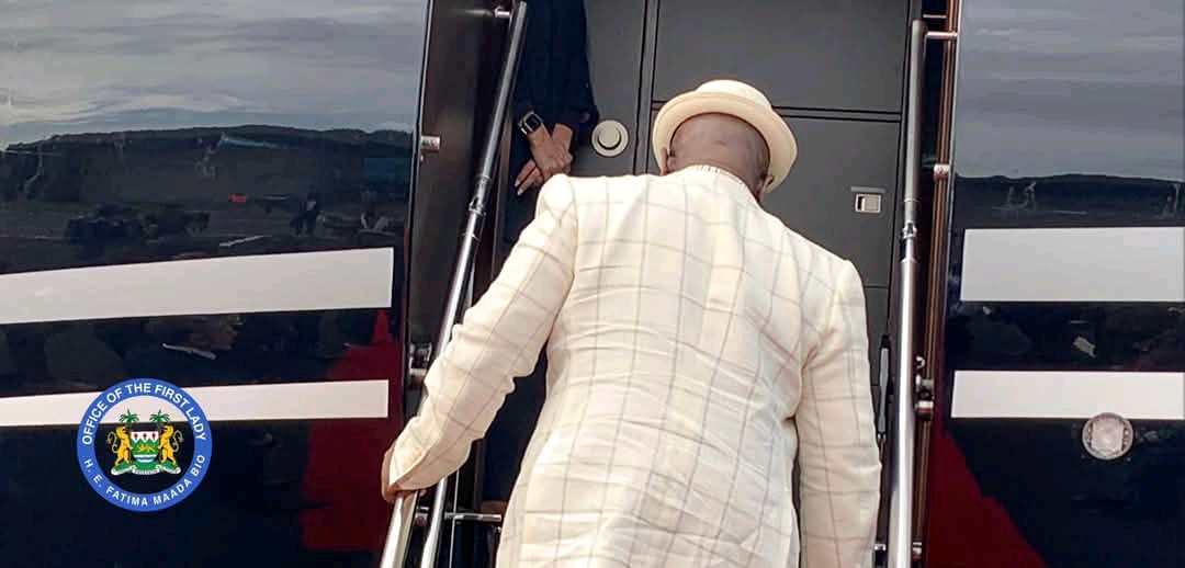 First Lady Fatima Maada Bio shared news of the trip on social media, saying she accompanied her husband as he departed for the UK. She noted that the conference provides a chance to share Sierra Leone’s journey and connect with others who care about Africa’s future.