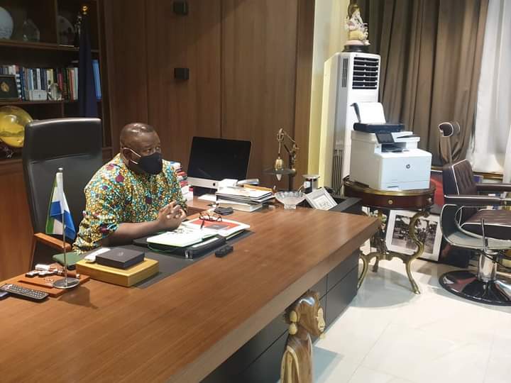The former Head of State, Valentine E.M Strasser thanked President Bio for supporting his medical surgery in Ghana and the newly constructed house.