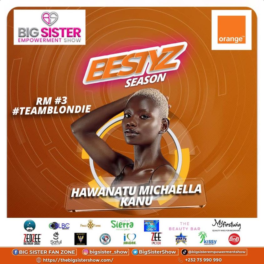 Hawanatu is an independent woman who is self-employed. she runs a beauty body pampering business, giving home services of manicure and pedicure. blondie is very good at what she does. she is a very sweet and a humble person. she has been featured in many musical videos as a dancer by different musicians within the country. Blondie hopes to elevate her career to a different level through the big sisters show.