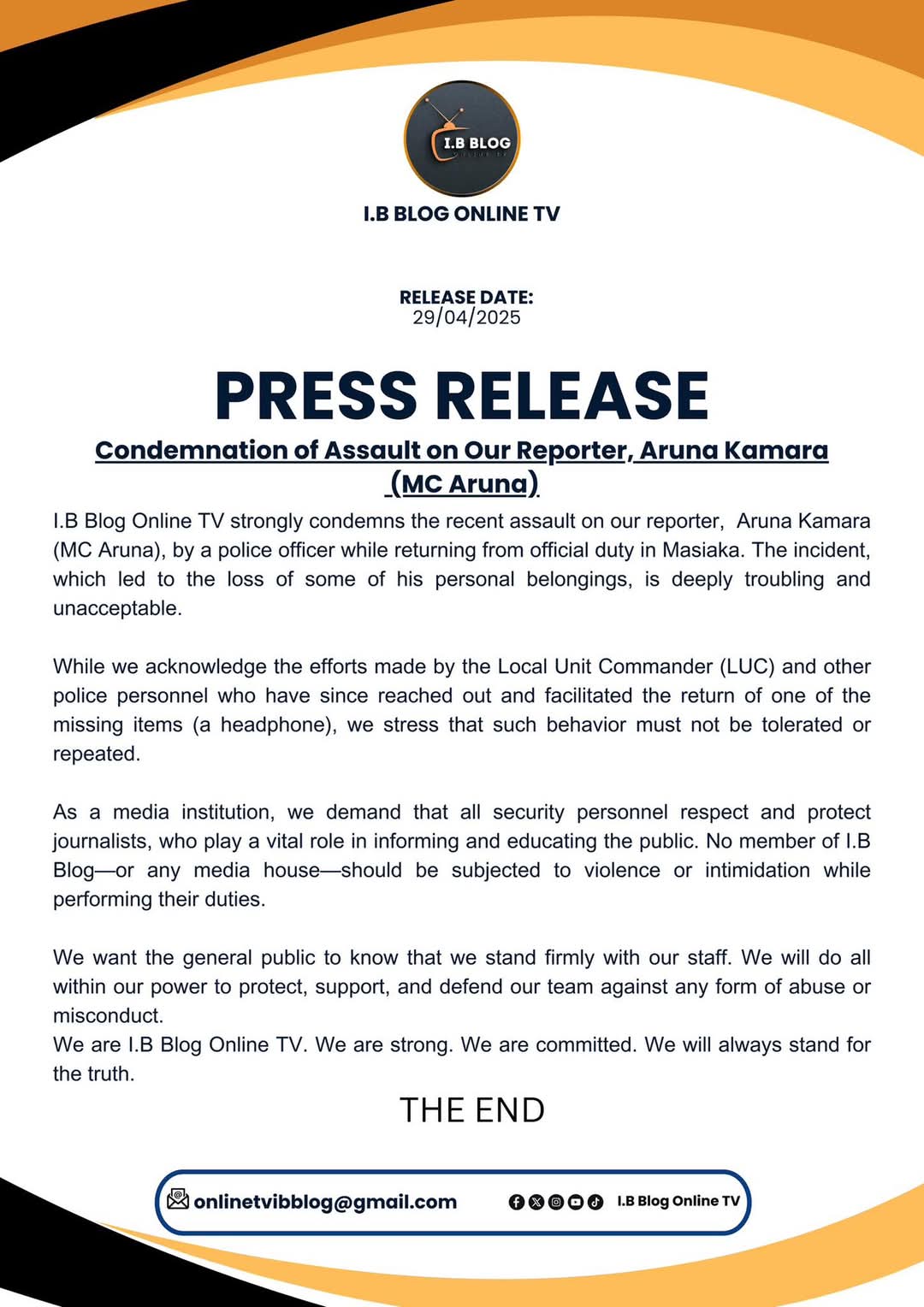 In the press release, I.B Blog Online TV confirmed the loss of some personal items. It also stated that the Local Unit Commander (LUC) and other police officers later reached out and helped return one of the items, a headset.