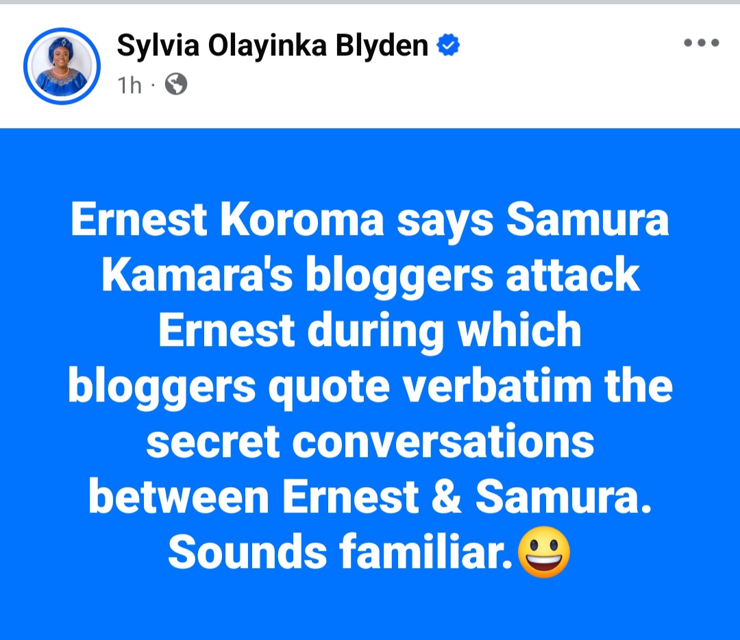 Blyden’s post has led to further discussions surrounding the political relationships between Koroma, Samura Kamara, and their associates, as well as what seems to be contradictions in their public personas.