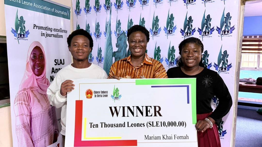 The handover ceremony was organised at the Sierra Leone Association of Journalists (SLAJ) headquarters in Freetown, following the awards ceremony held on April 17, 2026, at the Bintumani Hotel under the theme “China in My Eyes.”