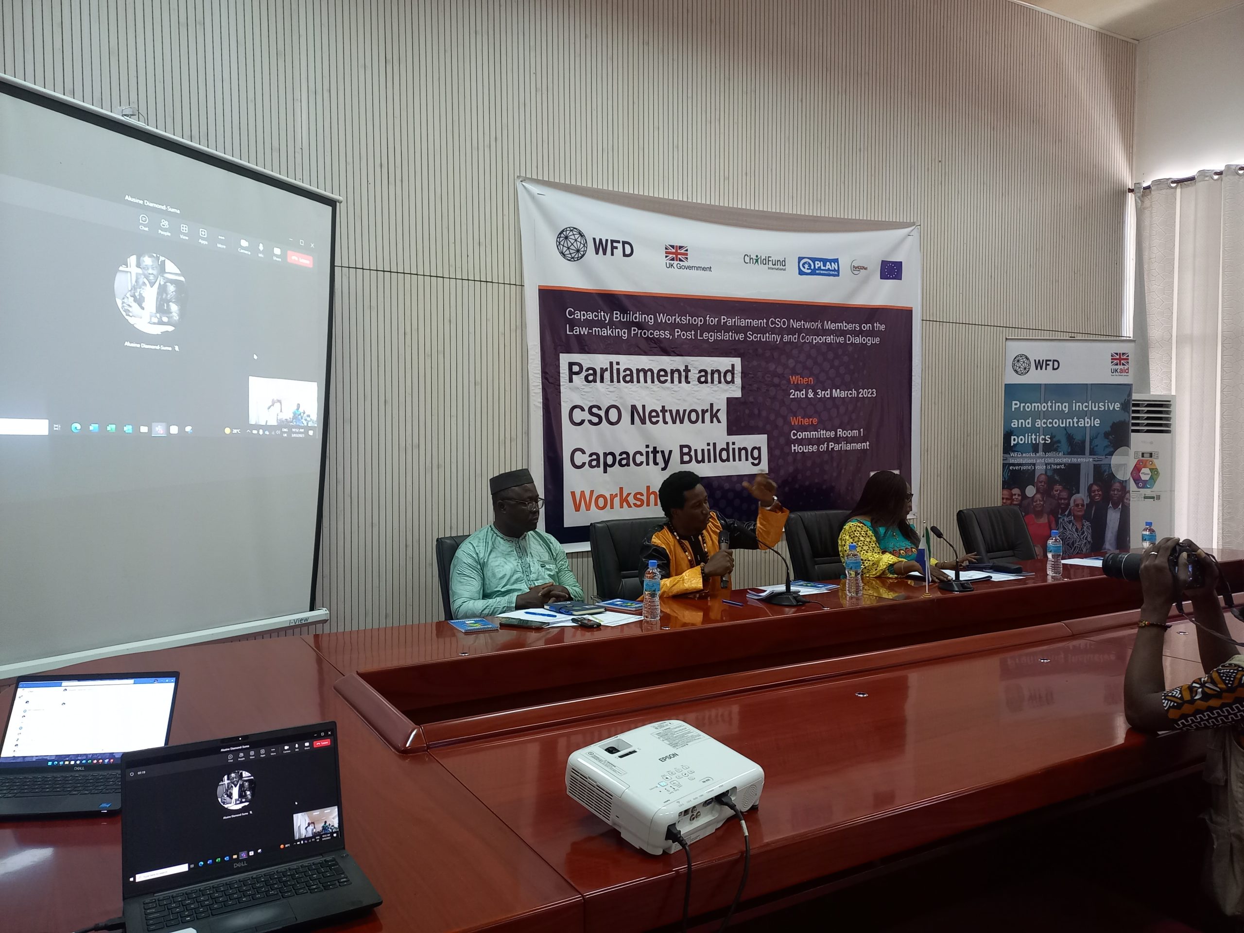 The workshop is for Parliament and CSOs members to network on the law-making process, post-legislative scrutiny and cooperative dialogue.