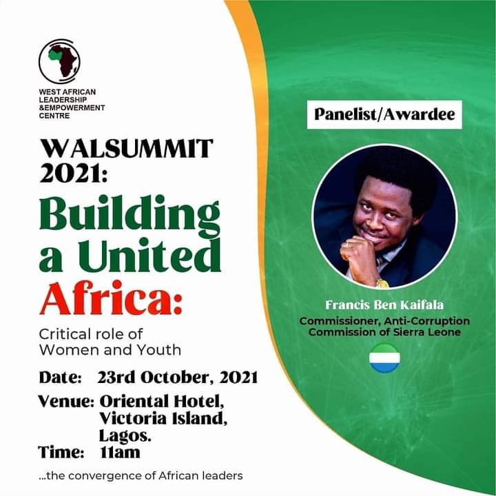 The Commissioner of the Anti-Corruption Commission, Francis Ben Keifala, has been invited to serve as panelist in the upcoming West African Leadership Summit in Lagos.
