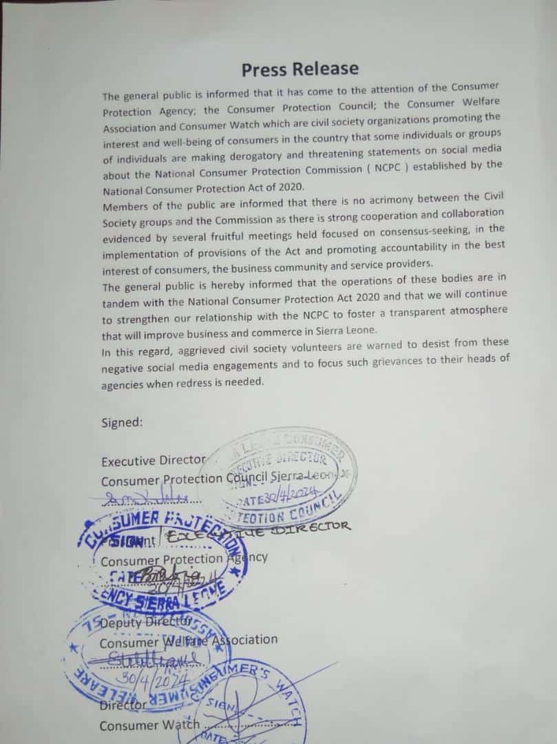 The release highlighted that various civil society organizations, including the Consumer Protection Agency, the Consumer Protection Council, the Consumer Welfare Association, and Consumer Watch, play crucial roles in advocating for consumer interests and well-being in Sierra Leone.