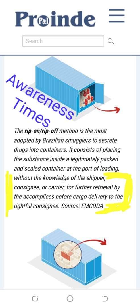 Finally, the Rip-On/Rip-Off method of concealing Cocaine in containers for shipment out of Brazil is also here illustrated as re-published from PROINDE, a top Brazilian Marine Insurance newsletter.