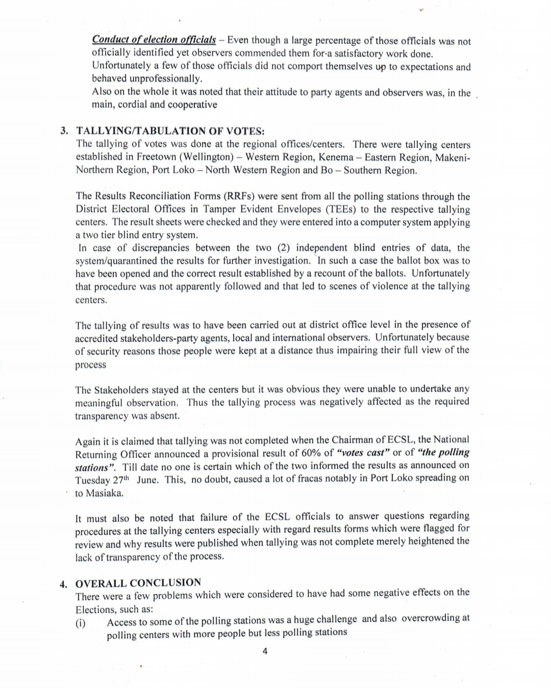 CCSL must ask the ECSL to release the disaggregated data of all polling stations nation wide for transparency and credibility for all parties involved if we are looking for a pathway forward.Like prof.Njai said,you cannot ignored the terrible and thievery work of ECSL and pretend as if nothing happened, and asked people to move on.We have to correct these anomalies if we want democracy to florish in our nation.Any attempt to ignore this concern,will not bear good fruit for our democracy and nation,and it will be threat for our peace as a nation. We don’t want these tit for tat game anymore.