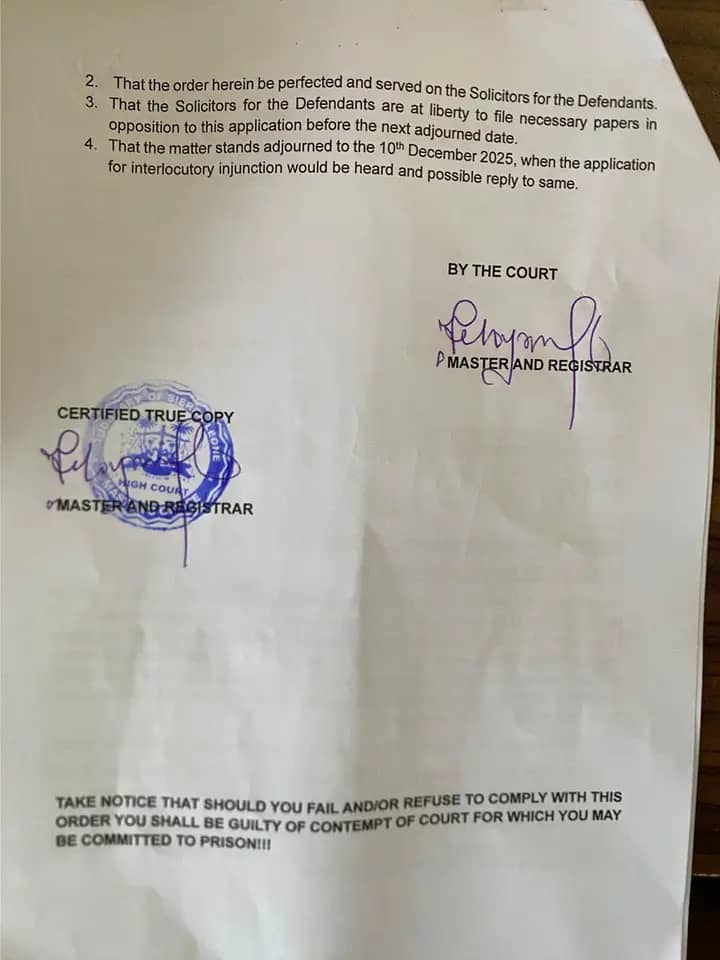 3.⁠ ⁠The matter has been adjourned to December 10, 2025, for the hearing of the substantive application for an interlocutory injunction.