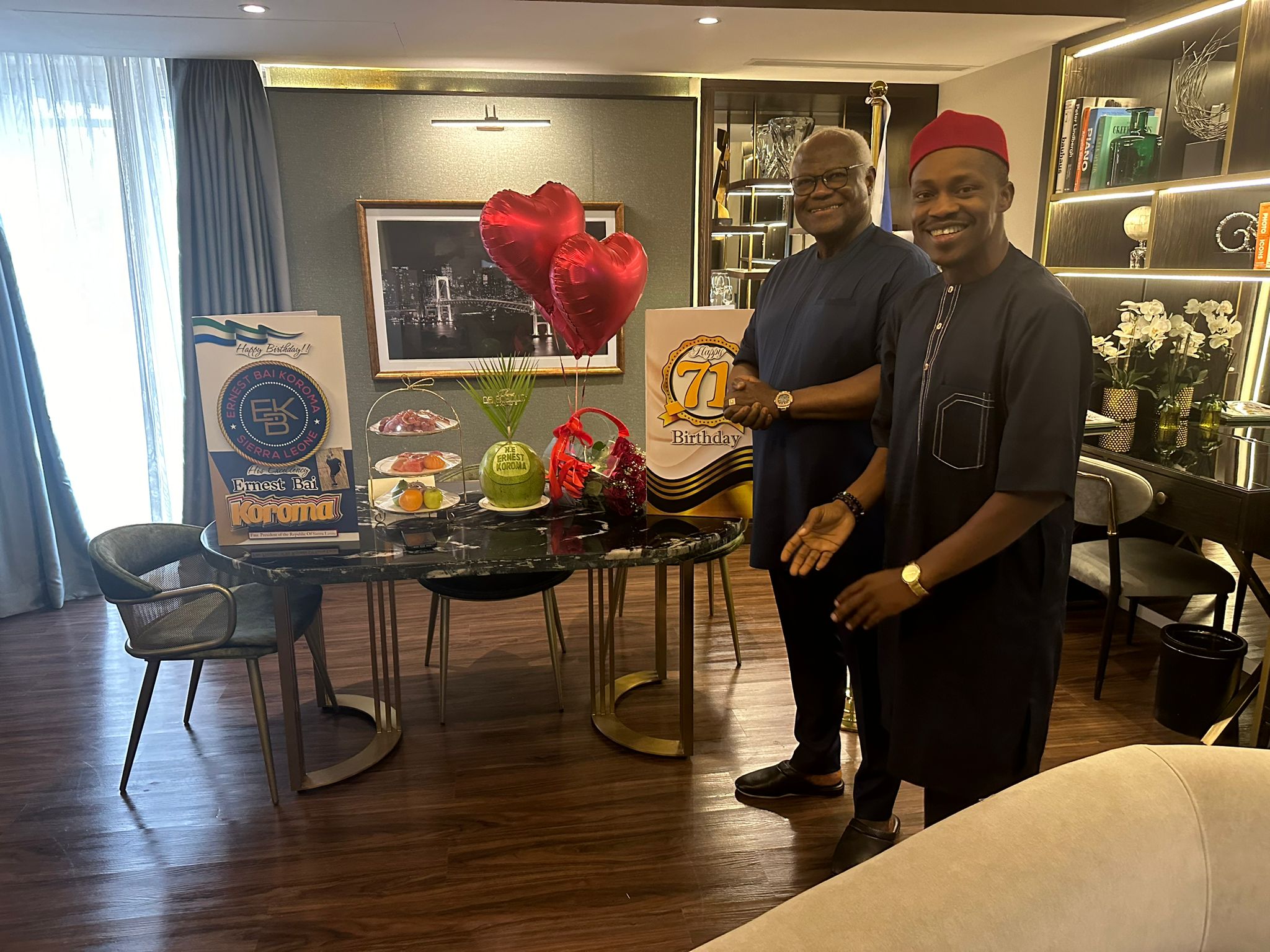 In a remarkable show of solidarity, Alhaji Dauda Musa Bangura, the former youngest commissioner of the Independent Media Commission (IMC) and now publisher of The Owl Newspaper, who is in Nigeria for a business trip, surprisingly joined former President Ernest Bai Koroma in celebrating his 71st birthday.