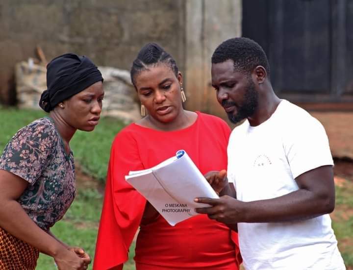 According to photos that surfaced on the internet George is working alongside seasoned Nollywood actors and actresses.