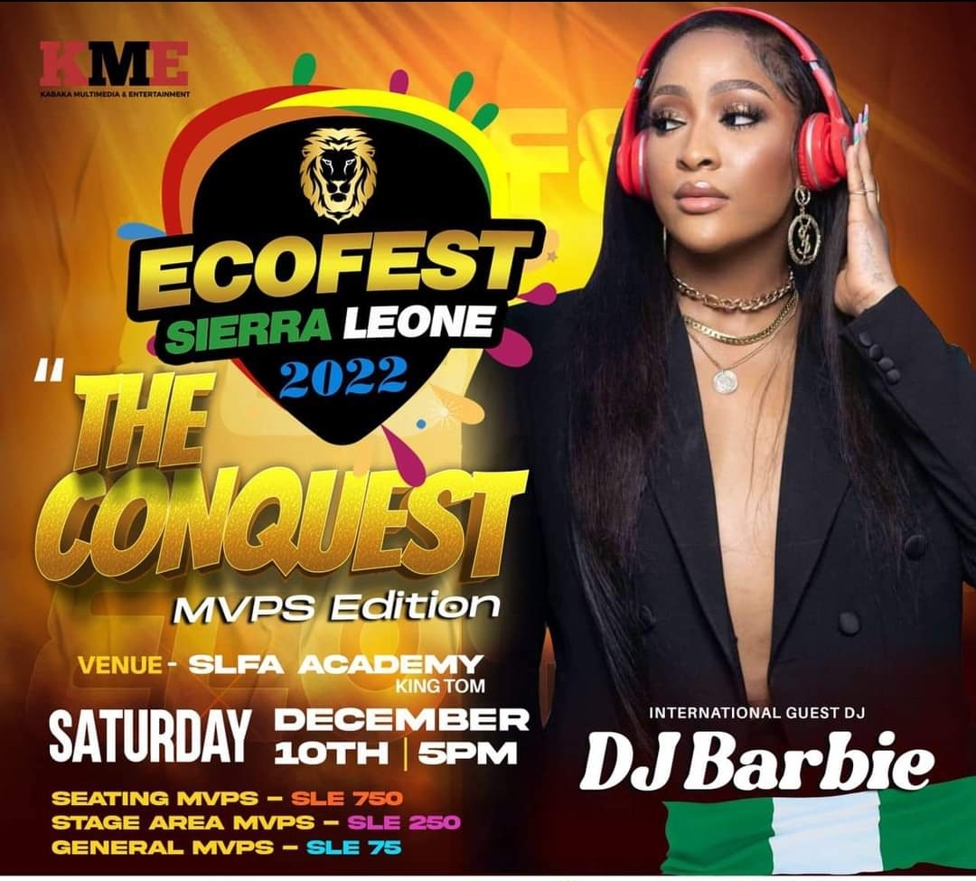 According to the CEO and Organizer of EcoFest Lawyer Abubakarr Turay popularly known as the Kabaka, he states that In 2019 she had the whole stadium locked down and dancing. Adding that DJ Barbie is no stranger to Sierra Leone,