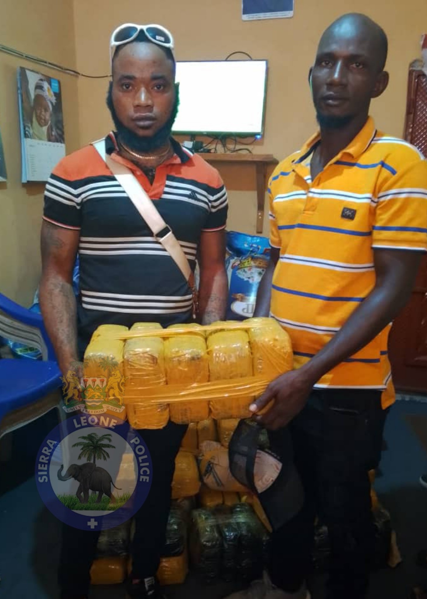 Upon searching the vehicle, officers discovered the concealed cannabis parcels. The suspects, identified as Amadu Jawara of Kabala Town and Alhaji Sitta Jalloh of No. 7 Yeli Sanda Road, Makeni, were immediately taken into custody.