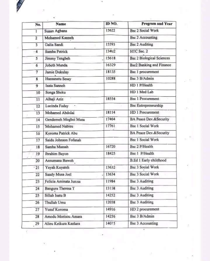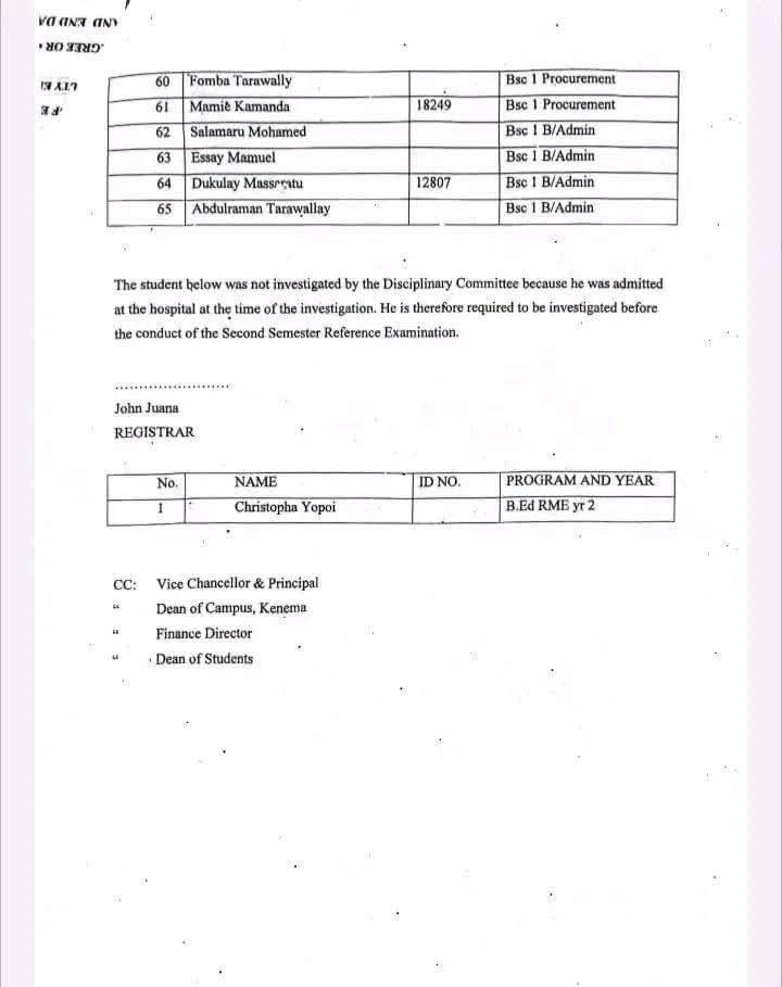 The Eastern Technical University of Sierra Leone has rusticated 65 students for examination malpractices during the First Semester Examination of the 2024/2025 Academic Year.