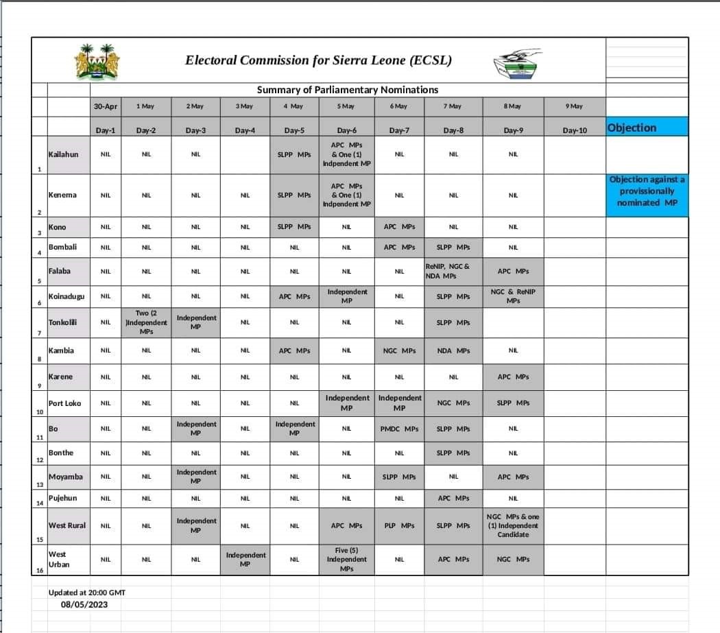 It is noted that, 9th May, 2023 marks the final day for the nomination process for all political parties and working with that mandate the commissioner has stated that, there will be no additional time or extension after the deadline.