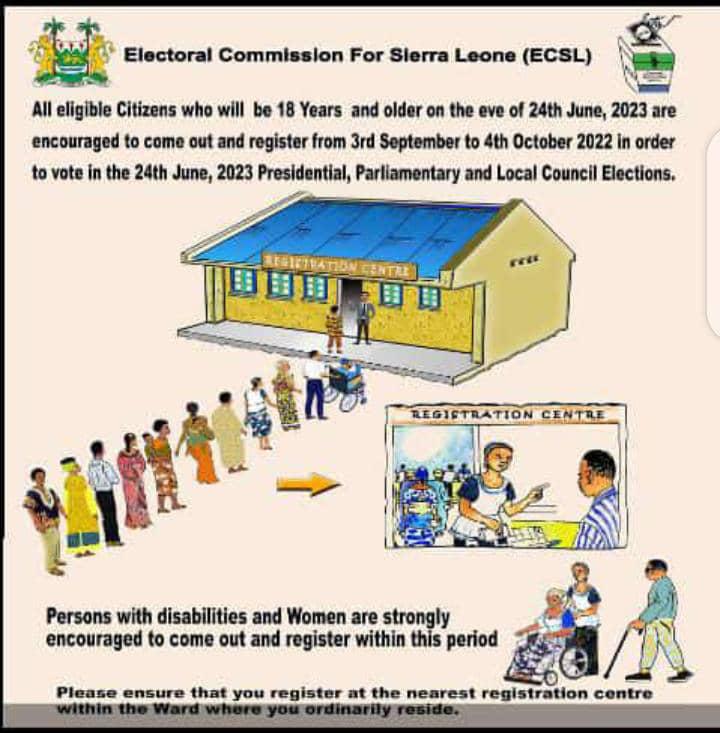 As part of their mandate, the Electoral Commission for Sierra Leone is also calling on eligible citizens to partake in the upcoming voter registration process which will commence on the 3rd of September 2022 to the 4th of October 2022.