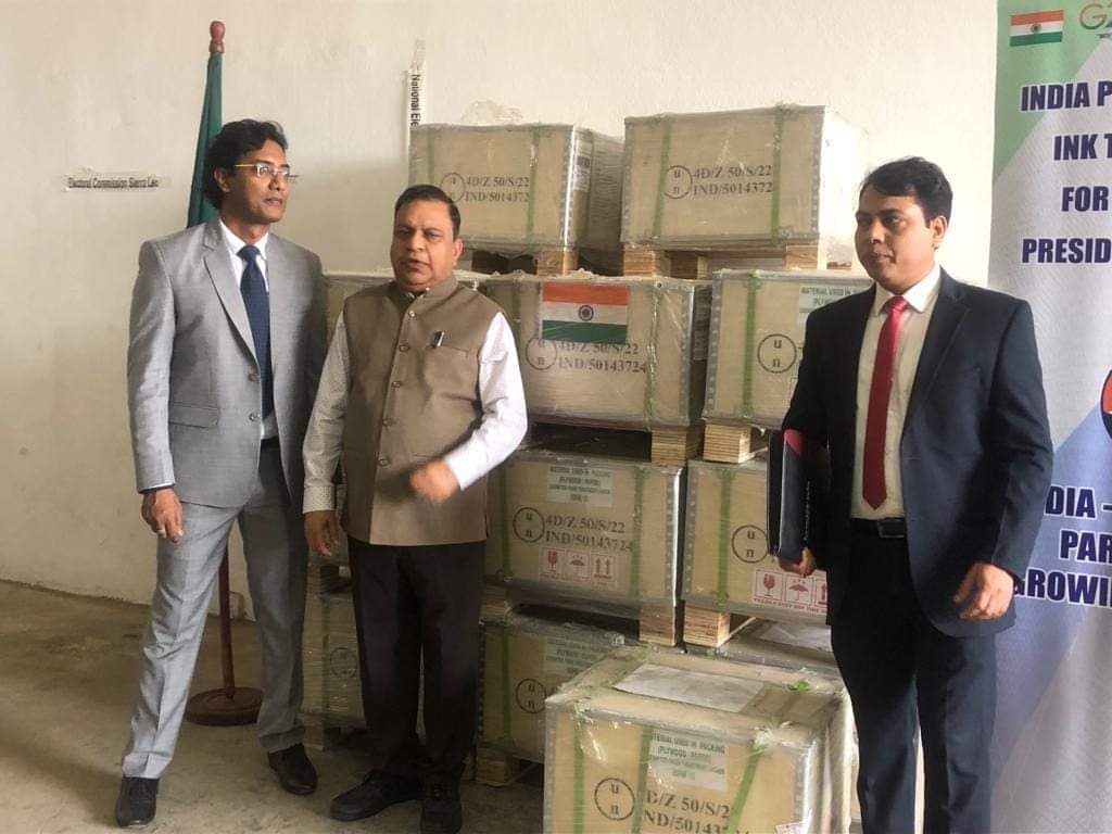 The High Commissioner of India in Sierra Leone handed over 21 boxes of permanent ink to the Electoral Commission of Sierra Leone to be used in the June 2023 elections.