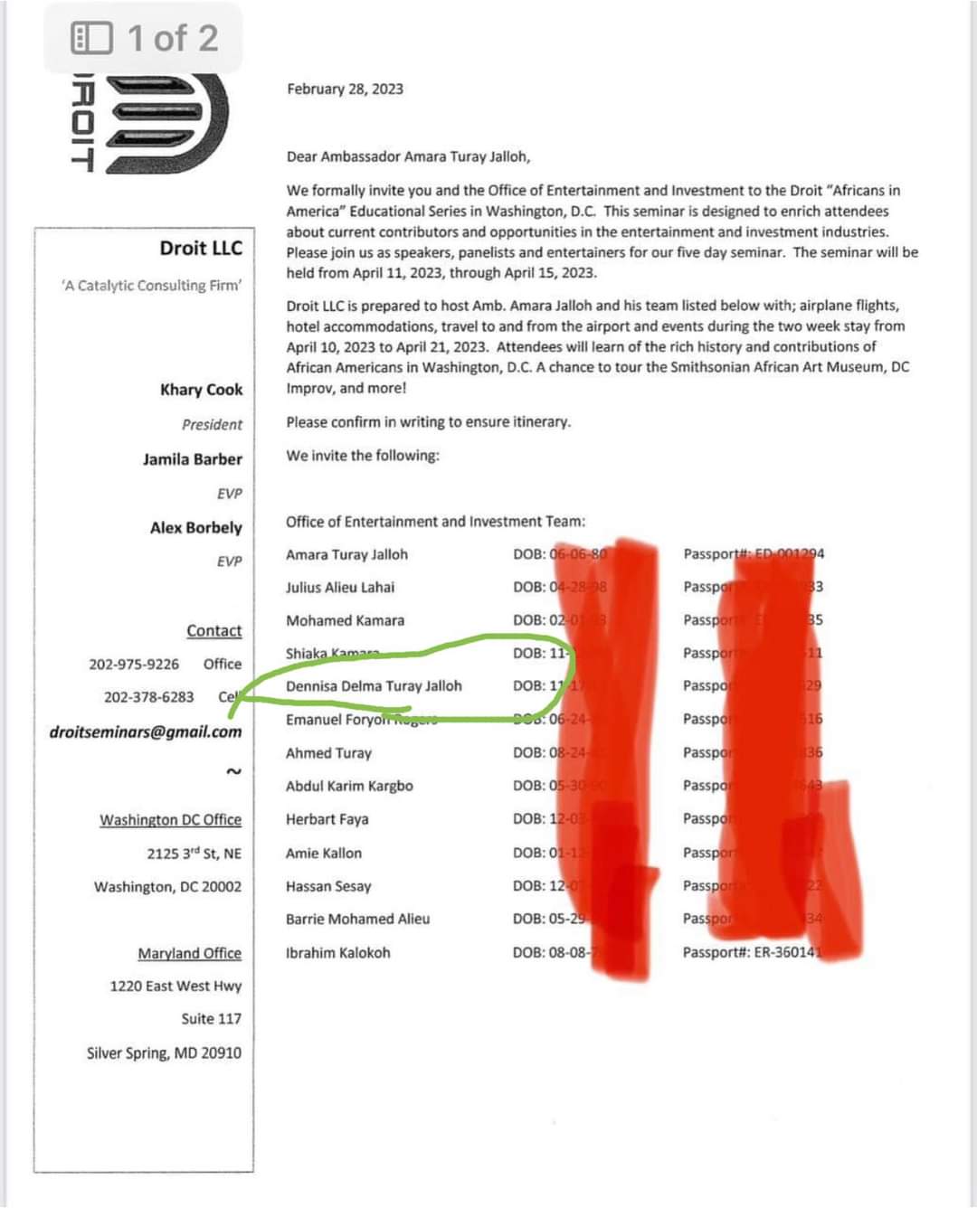 Reports further revealed that Amb Kao Denero allegedly submitted 13 names including his 6yrs old daughter and his younger brother Ahmad Turay as part of the delegation with a government service passport to attend the event in America. Other prominent names among them are Atical Foryoh and legendary Amie Kallon.
