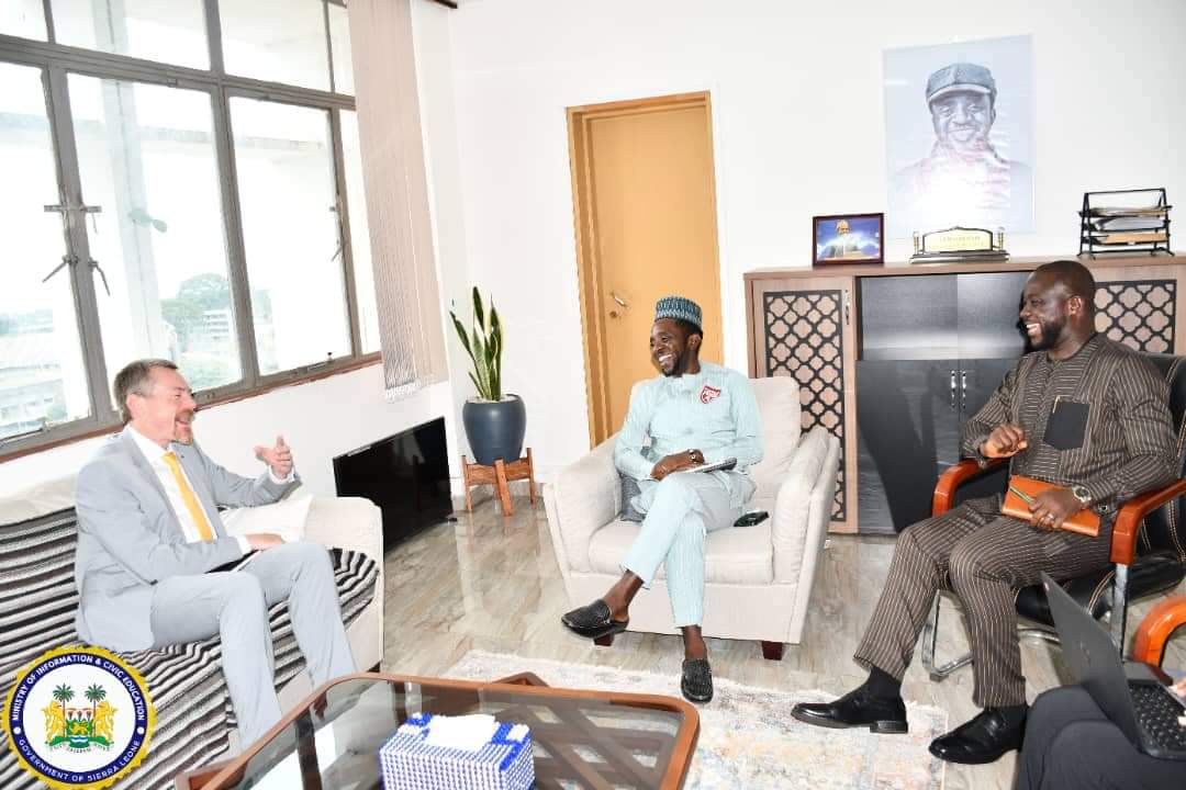 On 3rd October 2023, the Minister of Information and Civic Education, Honourable Chernor Bah, warmly welcomed the European Union Ambassador to Sierra Leone, Mr. Manuel Muller, at his office in Youyi Building.