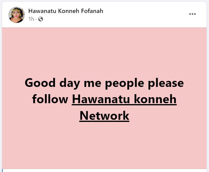 Checks also shows Hawanatu Konneh has asked her followers to follow her new network page which looks apparently like a plan B.
