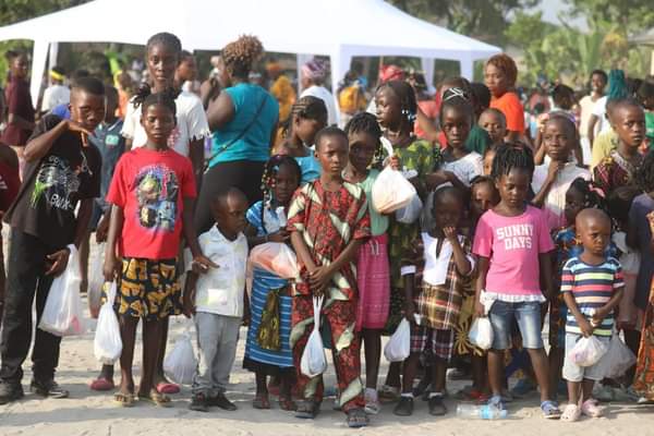On Monday, December 26, 2022, Boxing Day holiday, H.E. President Dr. Julius Maada Bio and First Lady Fatima Maada Bio celebrated their lunch with nearly 1,000 children at Bonthe Island, Southern Sierra Leone.