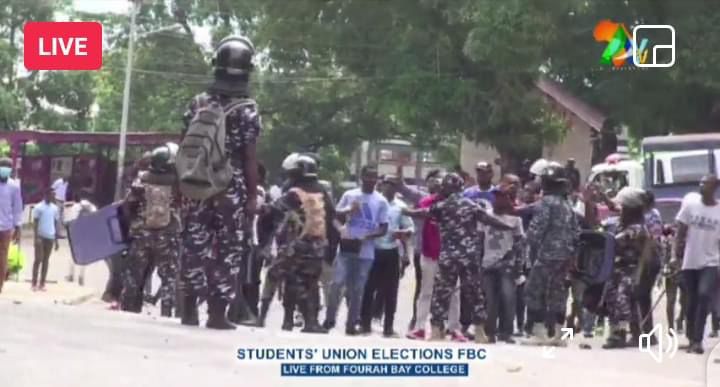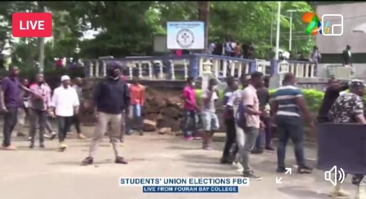 Fourah Bay College, University of Sierra Leone, Students’ Union Elections have turned violent after students started to exchange stones at each other with police also firing teargas.