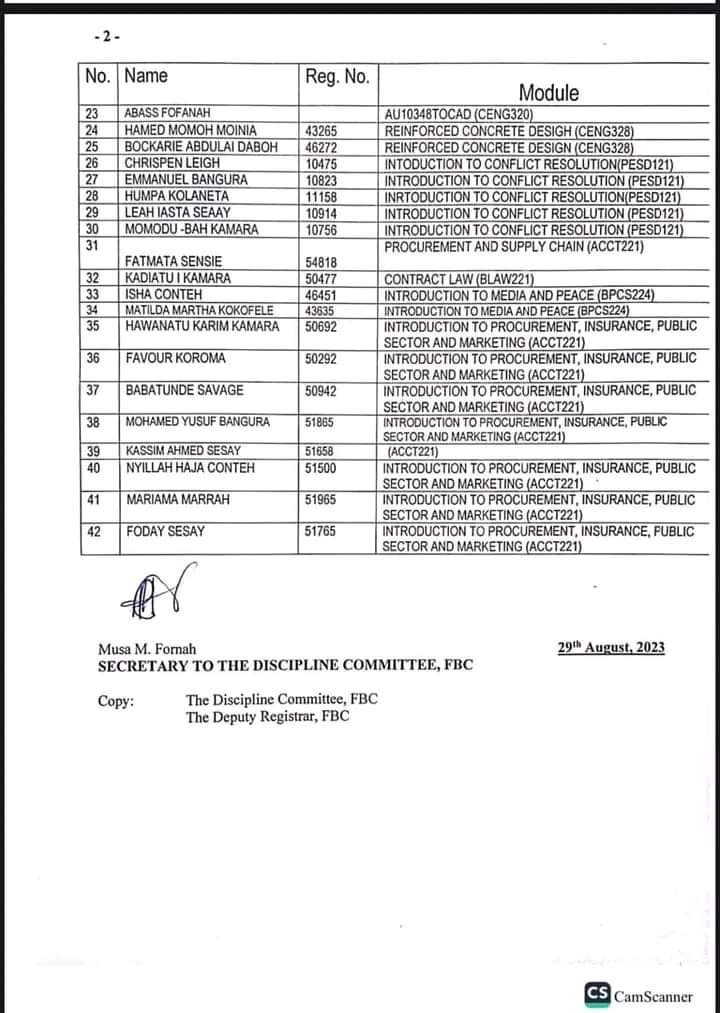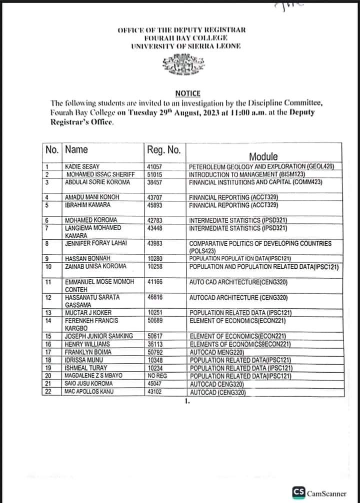The Disciplinary Committee of the Fourah Bay College (FBC), University of Sierra Leone has invited 42 students for an investigation process.