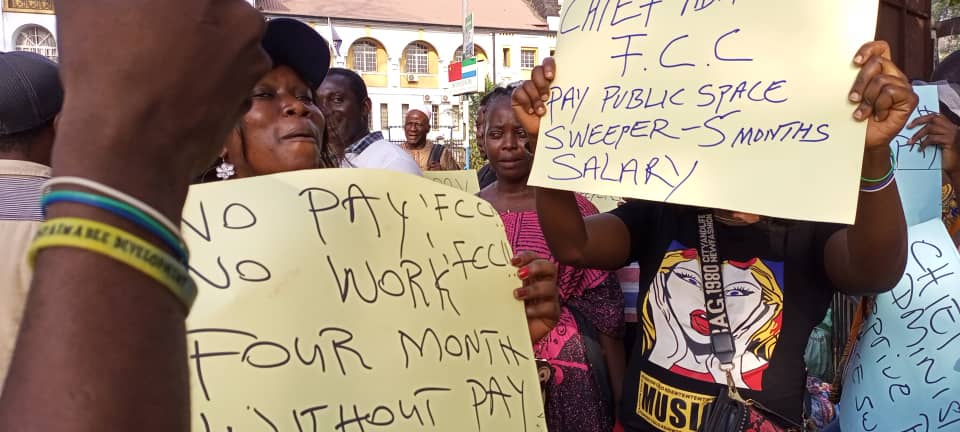 Public Space Sweepers of Freetown City Council have launched a peaceful protest demanding their salaries from the management of Council.