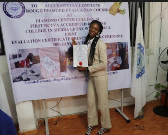 On Monday 30th January 2023, Rosemond Saffie Lossie became the first graduate of the Diamond Center College and also the first female diamond-certified person in Sierra Leone.