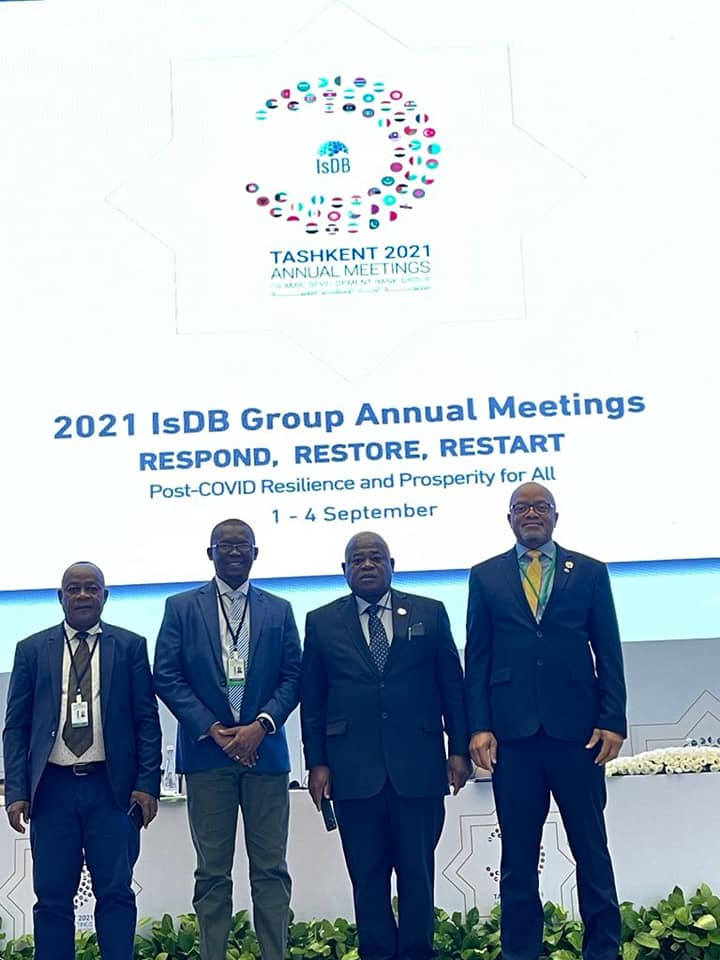 The Minister of Finance, Mr Denis Vandi and members of his Delegation, including Mr. Mathew Dingie, Mr. Sam Aruna and Ambassador Mohamed Yongawo, arrived in Uzbekistan’s capital, Tashkent, to attend the 21st Annual Meeting of the Islamic Development Bank (IsDB) in conjunction with the 46th Annual Board of Governors’ Meeting of the IsDB Group, on the them:”Respond, Restore, Restart: Post-COVID Resilience and Prosperity for all.”