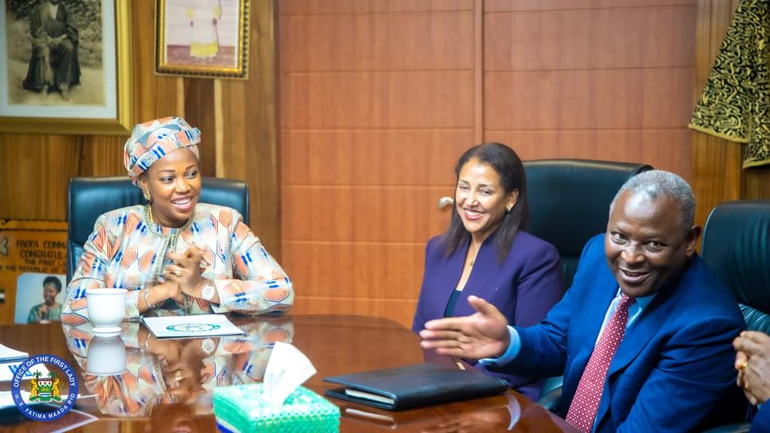The First Lady of the Republic of Sierra Leone, Dr. Fatima Maada Bio has briefed a high-powered delegation from the Susan Thompson Buffet Foundation and Equity Bank in Kenya in respect to her contribution in the country’s health sector in line with the agenda of His Excellency the President.