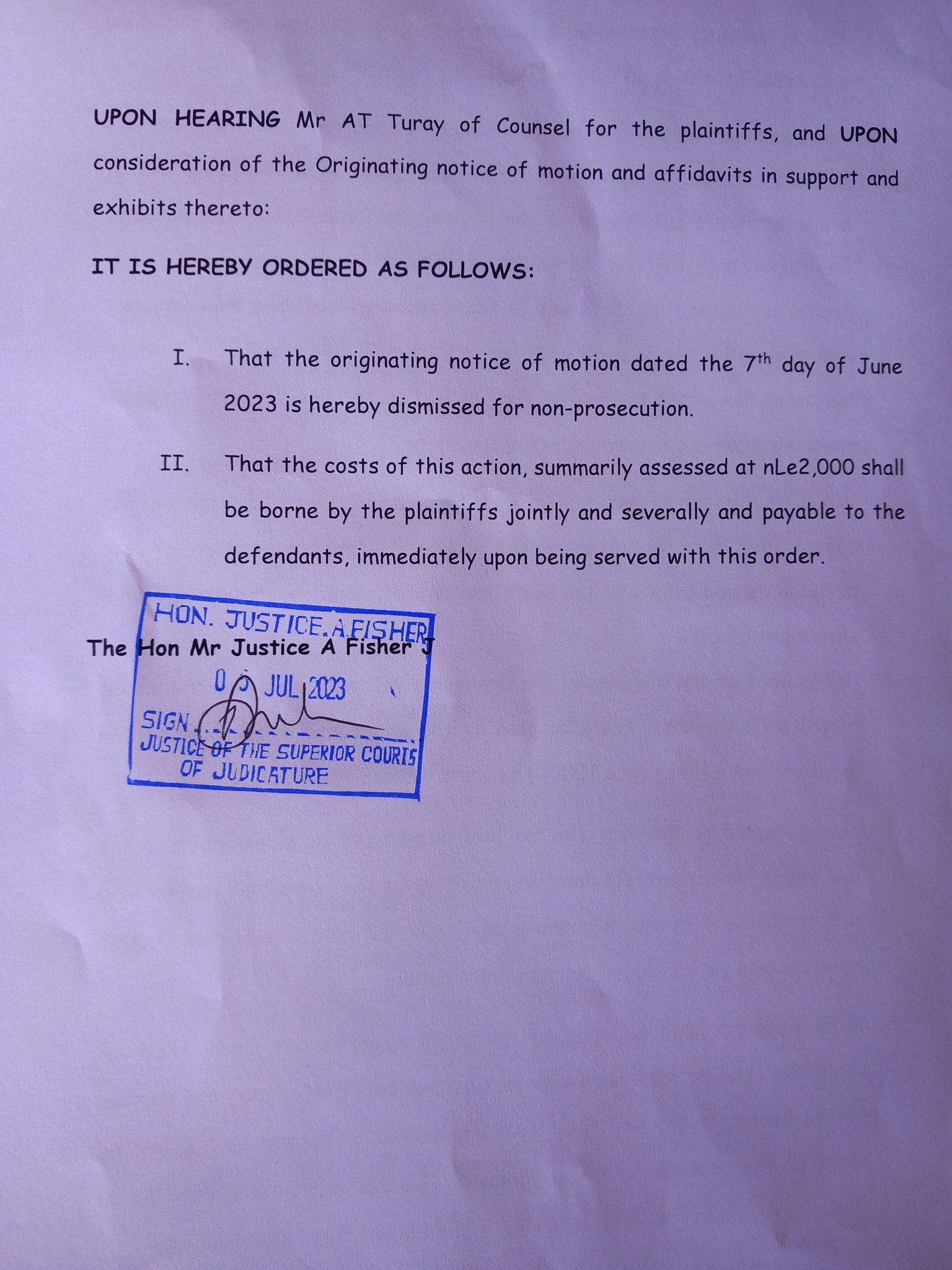 Well done Mr Justice Fisher that will served as an example to the APC because they don’t have any legal ground against the ECSL they just wanted to cause commotion in the state unnecessarily and all of them know that Mr Samura Kamara lost the election woefully.