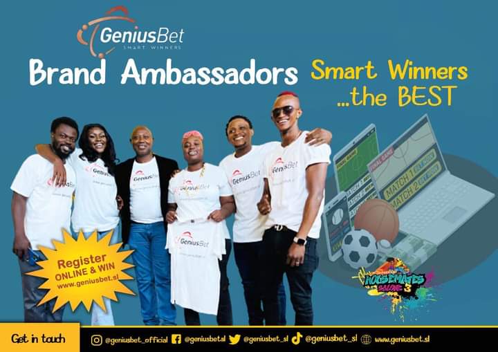 One of Sierra Leones betting company ”GeniusBet Sierra Leone” who are also one of the lead sponsors of the ongoing Housemates Salone season3 Reality tv show, has on Saturday 11 June 2022 announced the appointment of renowned comedian – Yemata; music icon- Empress Pee; celebrated footballer – Prince Barrie; reality tv star – Kenchine Palmer; model and Miss University/Sierra Leone representative to Miss University Africa- Hajaratu Kamara as official global brand Ambassadors for GeniusBet Sierra Leone’.