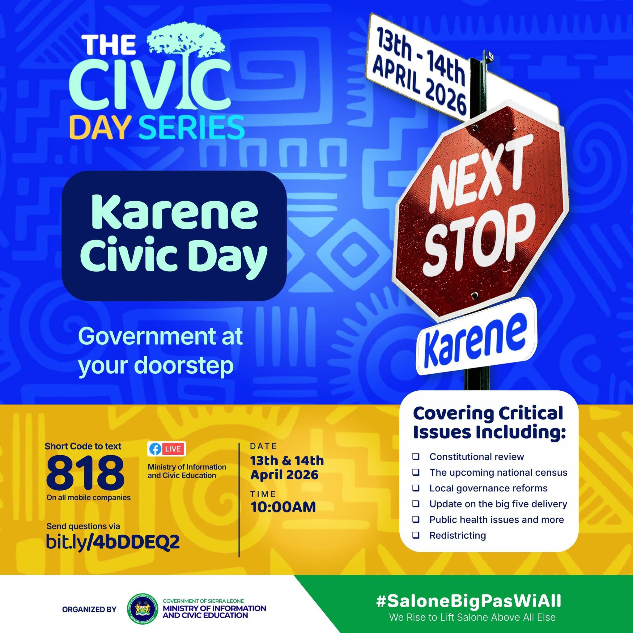 The Ministry of Information and Civic Education (MoICE) has announced that its nationwide Civic Day Series will be held in Karene District from April 13 to 14, 2026, as part of ongoing efforts to promote citizen engagement in governance.